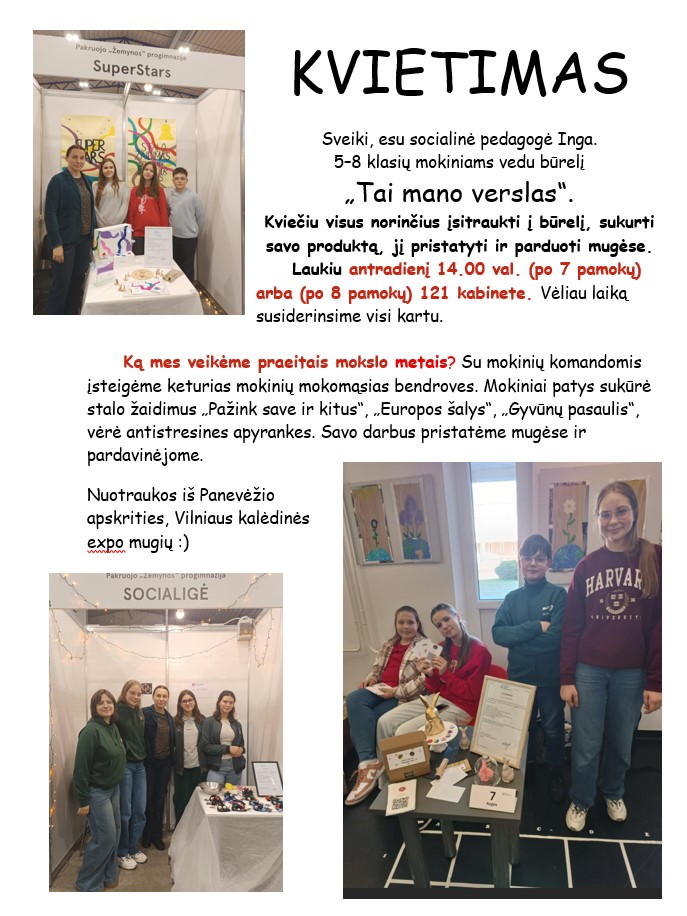 Kviečiu visus norinčius įsitraukti į būrelį, sukurti savo produktą, jį pristatyti ir parduoti mugėse.