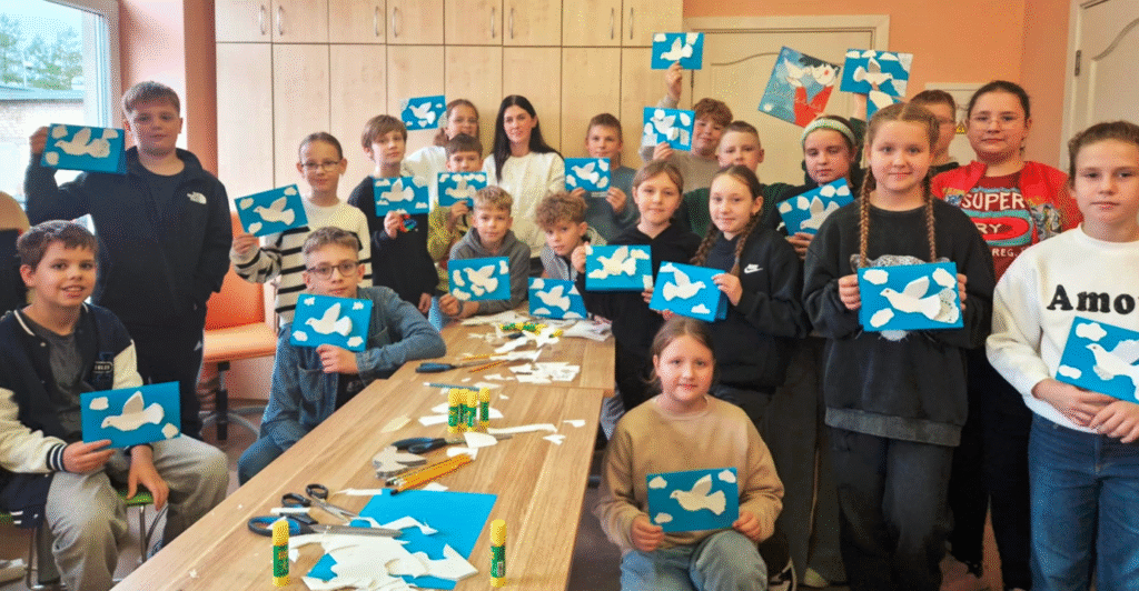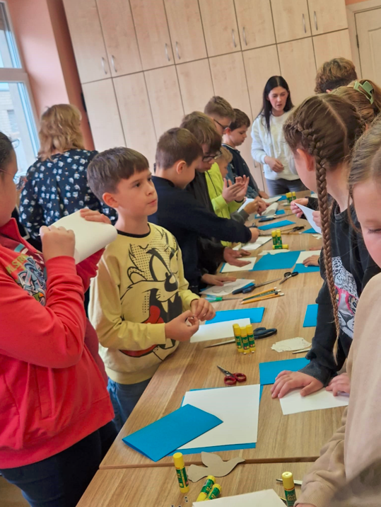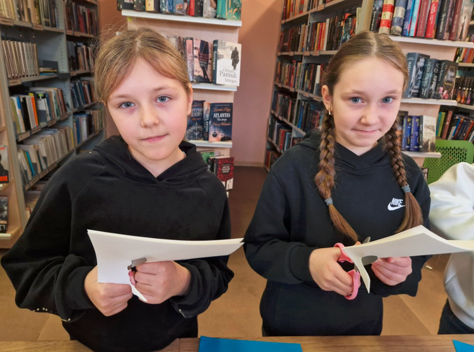 Kūrybinėse dirbtuvėse vaikai piešė ir lankstė savo vaizduotės paukštį. Visi gavo autorės autografą.