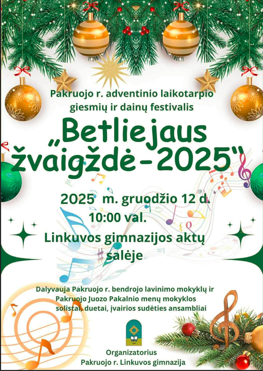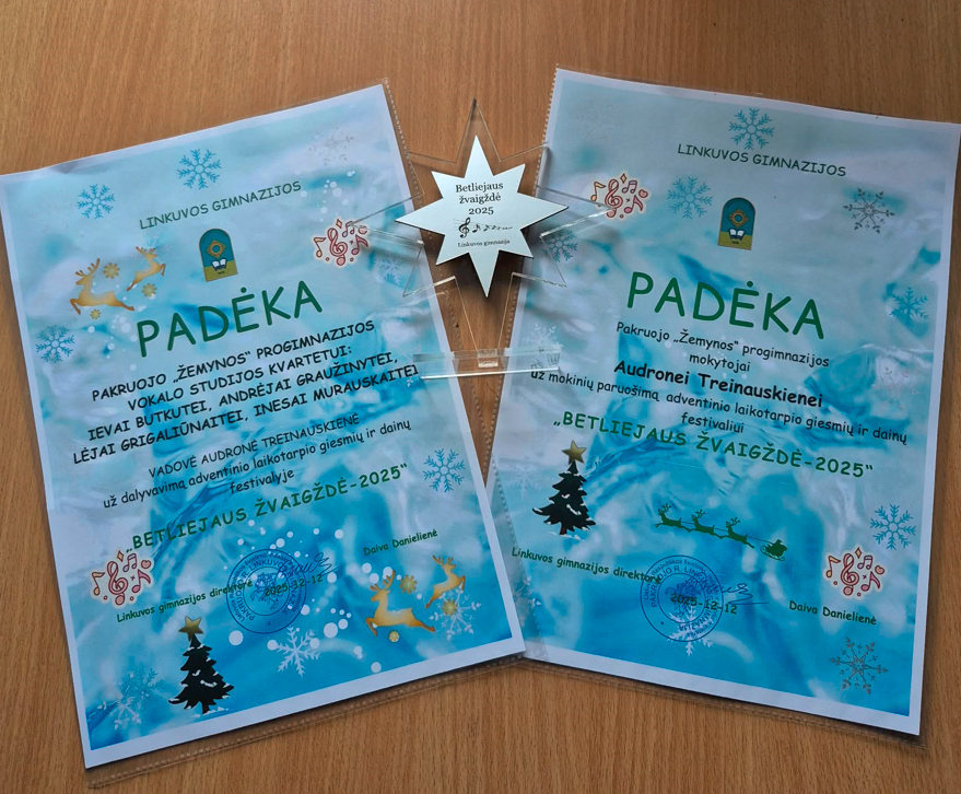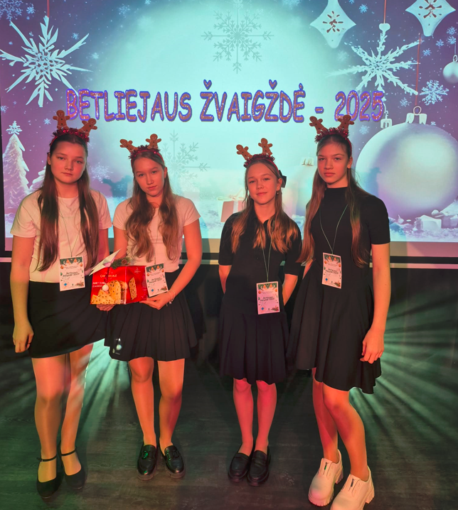 Gruodžio 12 d. Linkuvos gimnazijoje ketvirtąjį kartą vyko adventinių giesmių ir dainų festivalis „Betliejaus žvaigždė 2025“, kuriame dalyvavo „Žemynos“ progimnazijos Vokalo studijos mergaitės: Eva Butkutė, Andrėja Graužinytė, Inesa Murauskaitė ir Lėja Grigaliūnaitė. Renginys skirtas Kalėdų laukimo tradicijoms paminėti. Nuoširdžiai dėkojame renginio organizatorei, muzikos mokytojai Vaivai Klupšienei ir Linkuvos gimnazijos vadovybei už puikiai organizuotą šventę.