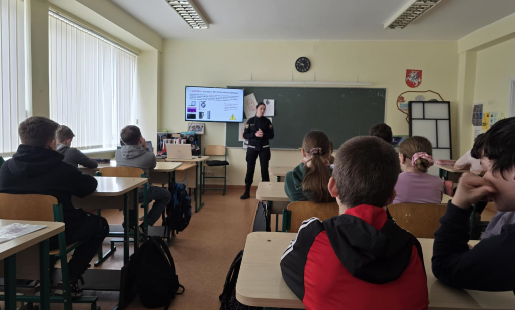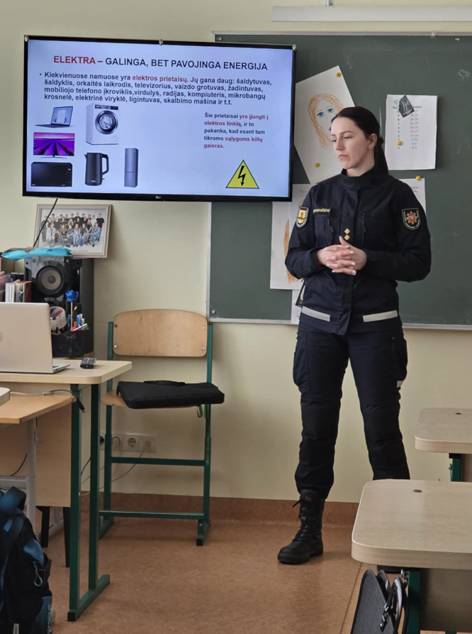 Pakruojo priešgaisrinės gelbėjimo tarnybos vyresnioji specialistė Regvita Rusakevičiūtė penktų klasių mokiniams vedė informatyvų užsiėmimą apie saugų elgesį. Pamokos metu ji priminė, kaip atsakingai naudotis elektriniais prietaisais, paaiškino, kokie pavojai kyla dėl netinkamo jų naudojimo, ir pateikė realių situacijų.
