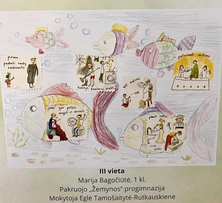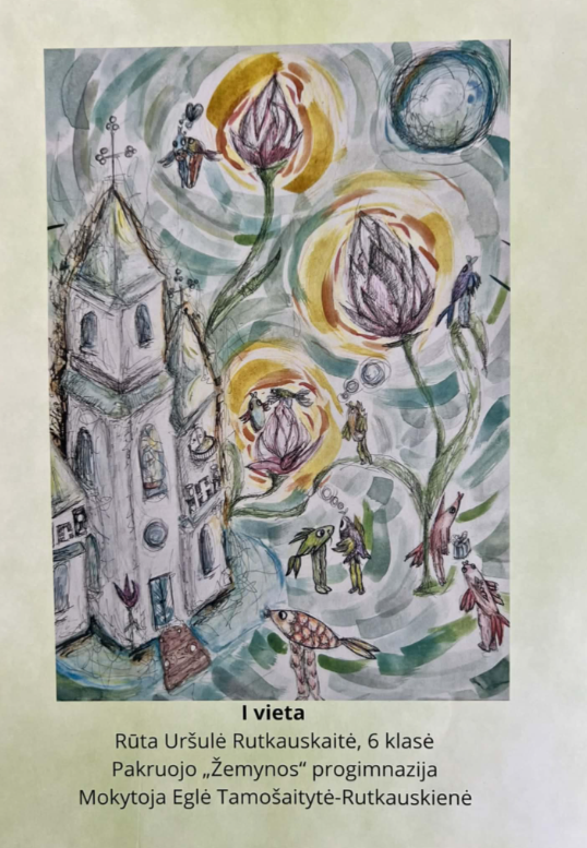 Mūsų progimnazijos mokiniai dalyvavo kūrybinių darbų konkurse „Užmeskime tinklus“ (Lk 5,4), kuris vyko Šiaulių katechetikos centre, ir buvo puikiai įvertinti. 1–4 klasių grupėje 1c klasės mokinė Marija Bagočiūtė laimėjo III vietą, o 5–8 klasių grupėje I vieta atiteko Rūtai Uršulei Rutkauskaitei iš 6c klasės.