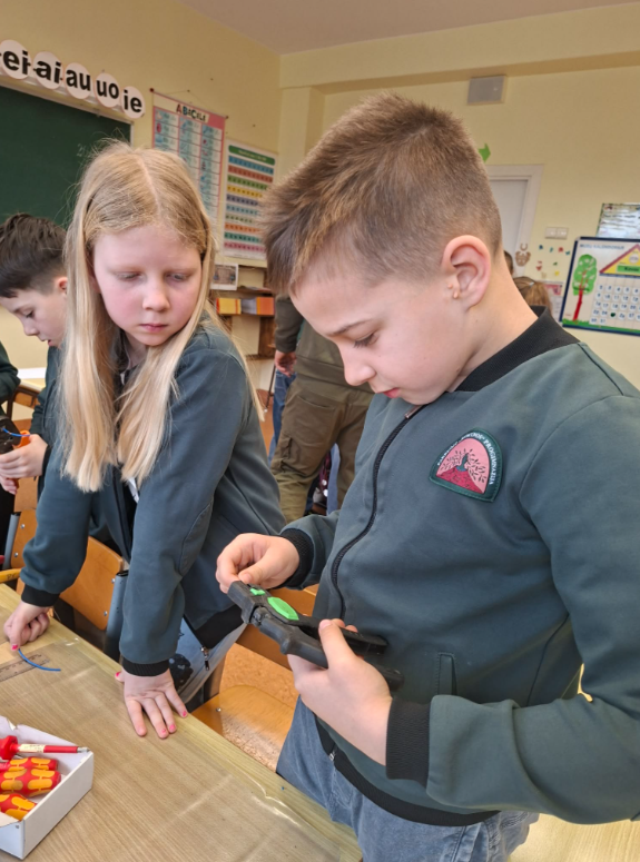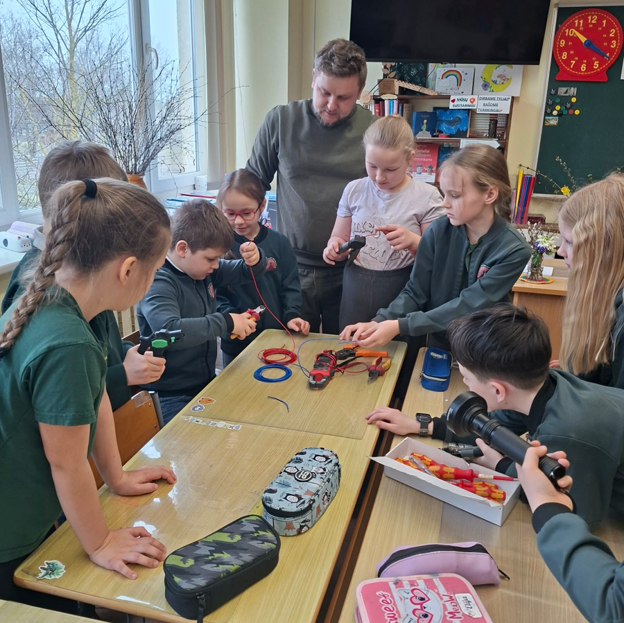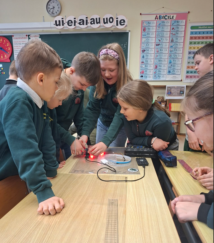 Kovo 25 dieną 2a klasėje gamtos mokslų pamoką „Elektros energija“’ vedė Augusto tėtis – elektrikas. Kad įveiktų „Elektros detektyvų“ iššūkį, antrokai aiškinosi, kaip keliauja elektros energija, susipažino su įvairiais įrankiais ir praktiškai juos išbandė, braižė ir jungė elektros grandines, sužinojo, kodėl elektrikų įrankiai izoliuotomis rankenomis, kas slepiasi kabelių viduje, kaip saugiai draugauti su elektros energija ir ją taupyti.