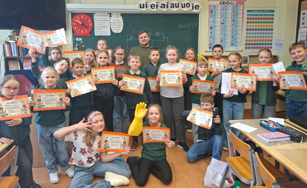 Už drąsą tyrinėjant elektros pasaulį, puikias žinias apie saugų elgesį su įrankiais ir sėkmingai įveiktą „Elektros detektyvų“ iššūkį mokiniai buvo apdovanoti Jaunojo elektros eksperto diplomais.