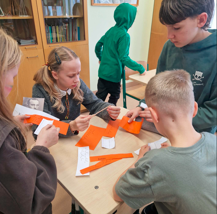Vėliau klasėse mokiniai atliko įvairias kūrybines užduotėles, susijusias su mūsų šalies simboliais, istorija ir kultūra – rašė vaizdo diktantą, kūrė dėlionę, kūrė filmukus. Ypač daug emocijų sukėlė istorijos „pabėgimo kambarys“, kuriame mokiniams teko spręsti logines, istorines ir kūrybines užduotis, kad atrakintų kitą žingsnį ir sėkmingai „pabėgtų“.
