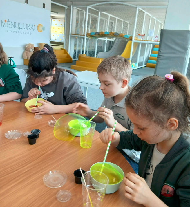 Kovo 5 dieną 2b klasės mokiniai džiaugėsi malonia staigmena – dovana, kurią padovanojo agentūros „Visos Lietuvos vaikai“ Pakruojo skyrius. Tai buvo smagi viešnagė vaikų pramogų studijoje „Mėnuliukai“. Vaikai sužinojo, kaip gaminamas šlykštukas, ir patys jį pasidarė, su juo eksperimentavo. Taip pat antrokai patys ant pagaliukų suko saldžią vatą, išgaudami įvairias figūras. Pasmalyžavę vaikai smagiai leido laiką žaisdami.