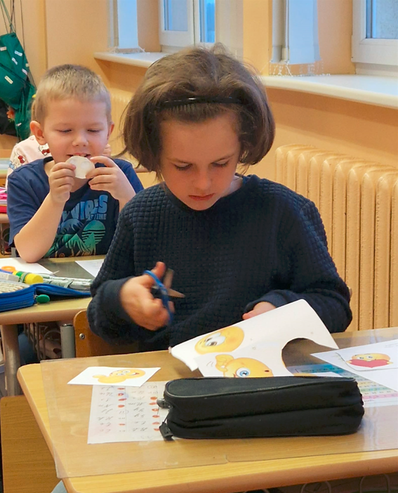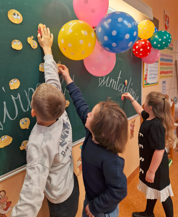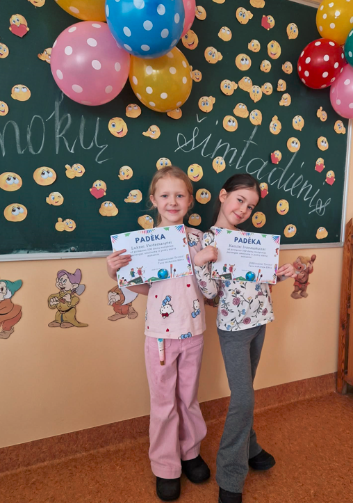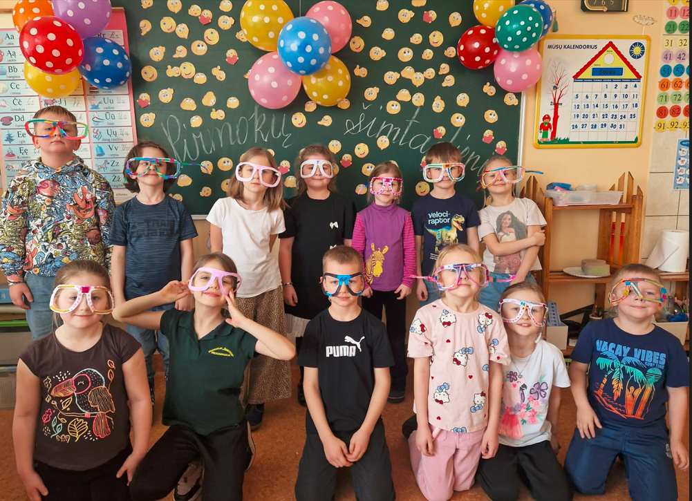 Pirmiausia skaitėme tekstą apie Šimtadienį, o vėliau, pasitelkę vaizduotę, kirpome net 100 emocijų veidukų, atspindinčių jausmus, patirtus per pirmąsias 100 dienų mokykloje. Smagios veiklos tęsėsi – netgi šokome kartu su penktokais! Taip pat pasigaminome stebuklingus akinius, pro kuriuos pamatėme, kiek daug išmokome ir patyrėme per šį laiką. Džiaugsmo netrūko, kai visi pirmokai gavo padėkas už pirmąsias 100 dienų mokykloje – už pastangas, smalsumą ir puikų startą mokantis.