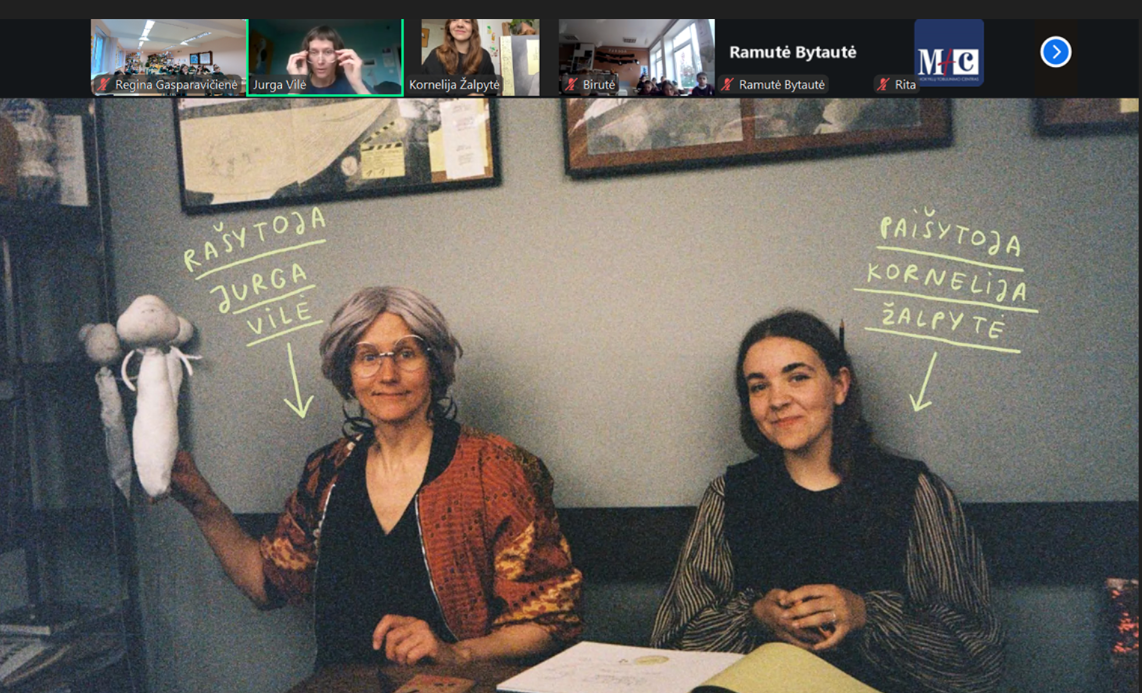 Gruodžio 3 dieną 6c klasė dalyvavo nuotolinėje literatūros pamokoje, į kurią susijungė net 68 klasės iš visos Lietuvos. Ši pamoka yra vienas iš festivalio „Vaikų knygų sala“ renginių. Rašytoja Jurga Vilė ir iliustratorė Kornelija Žalpytė pristatė naują knygą „Džuljeta ir kino kaukai“. Knygos autorės papasakojo, jog knygos atsiradimas ypatingas – kino centras „Skalvija“ užsakė šį leidinį. Tai pirmoji lietuviška knyga vaikams apie kiną. Kartu su menininkėmis keliavome kino istorijos puslapiais, susipažinome su įvairiomis profesijomis, žiūrėjome brolių Liumjerų filmą, džiaugėmės dar viena komiksų knyga.