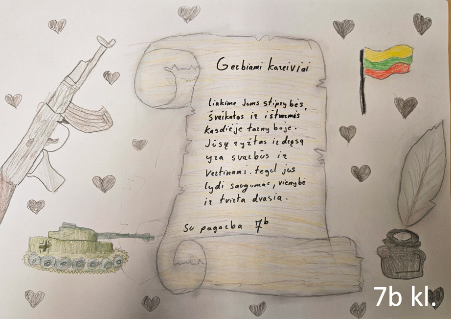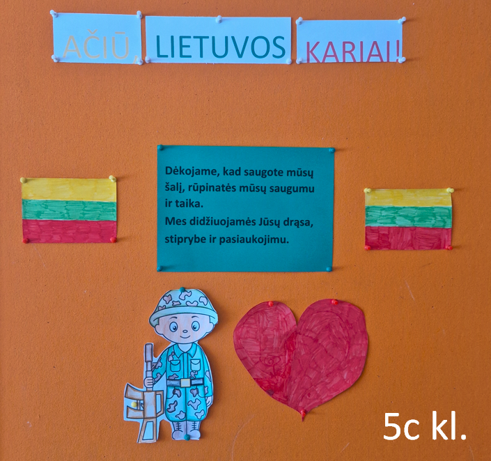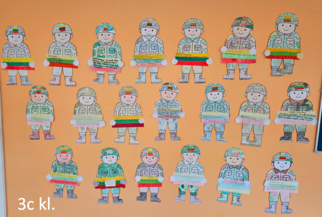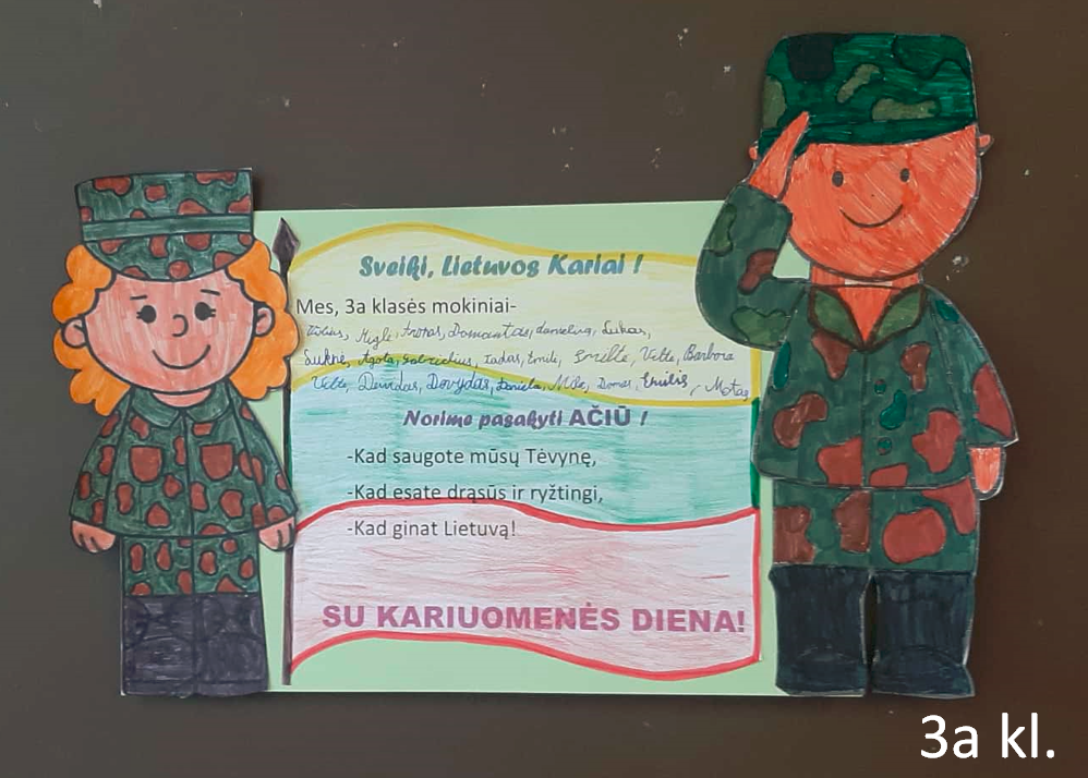 Lapkričio mėnesį šventėme Lietuvos kariuomenės dieną. Vienos klasės kariams kūrė sveikinimus, kitos į mokyklą pasikvietė įvairių svečių, susijusių su Lietuvos kariuomene.