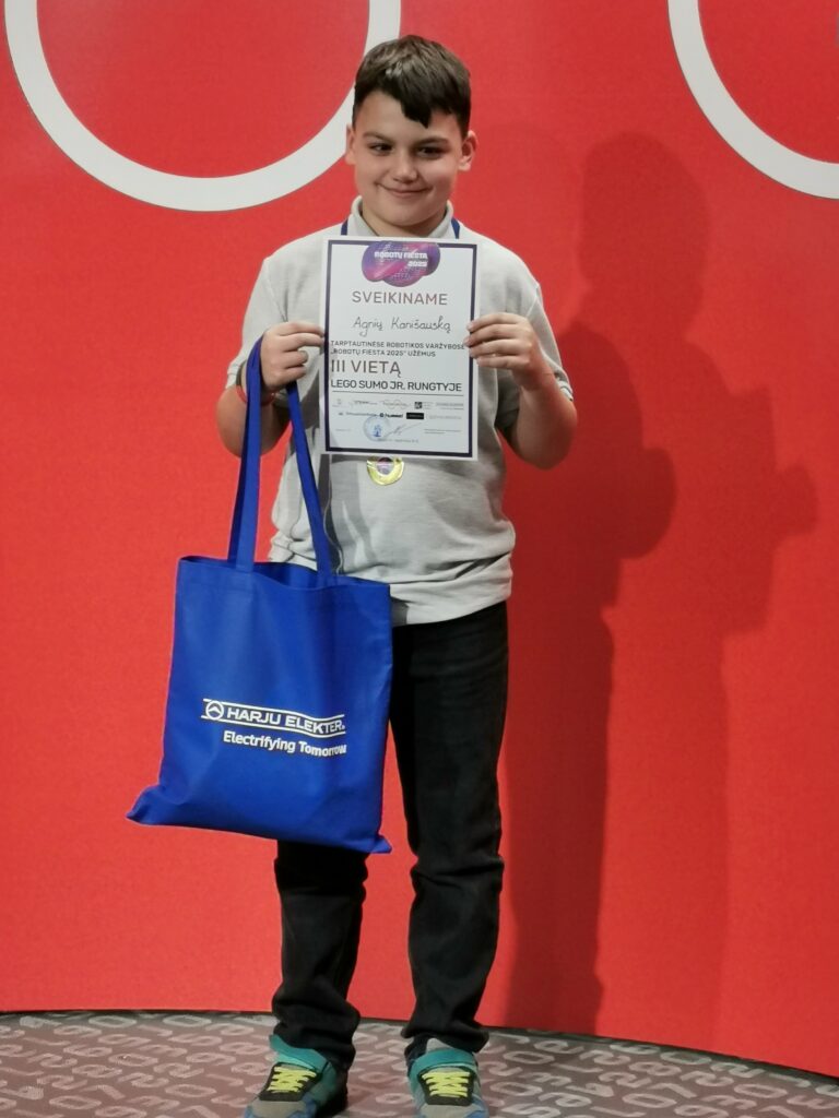 Spalio 8 dieną mūsų mokyklos komanda Panevėžyje dalyvavo tarptautinėse varžybose „Robotų fiesta 2025“. Iš viso į renginį susirinko apie 150 dalyvių, tad konkurencija buvo tikrai didelė. Mūsų mokiniai savo jėgas išbandė LEGO SUMO JUNIOR, LEGO SUMO, LEGO LINIJOS SEKIMO ir ANTWEIGHT rungtyse. Džiaugiamės puikiu pasiekimu – Agnius Kanišauskas LEGO SUMO JUNIOR iki 13+ metų amžiaus grupėje iškovojo 3 vietą!