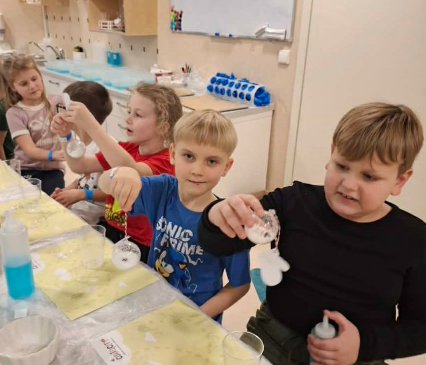 Pirmokai dalyvavo ir kalėdinėje edukacijoje „Šalčio paslaptys“. Jos metu vaikai tapo žiemos tyrinėtojais: Smalsumo laboratorijoje jie ieškojo, kas slepiasi lede. Bandydami skirtingas medžiagas ir stebėdami jų poveikį šalčiui, mokiniai patys išsiaiškino, kuris būdas greičiausiai padeda atskleisti paslaptį. Pasibaigus eksperimentams laukė kūrybinė dalis – vaikai gamino baltą sniegą ir kūrė žiemos įkvėptą kalėdinį burbulą, kurį vėliau pakabins ant savo eglutės namuose.