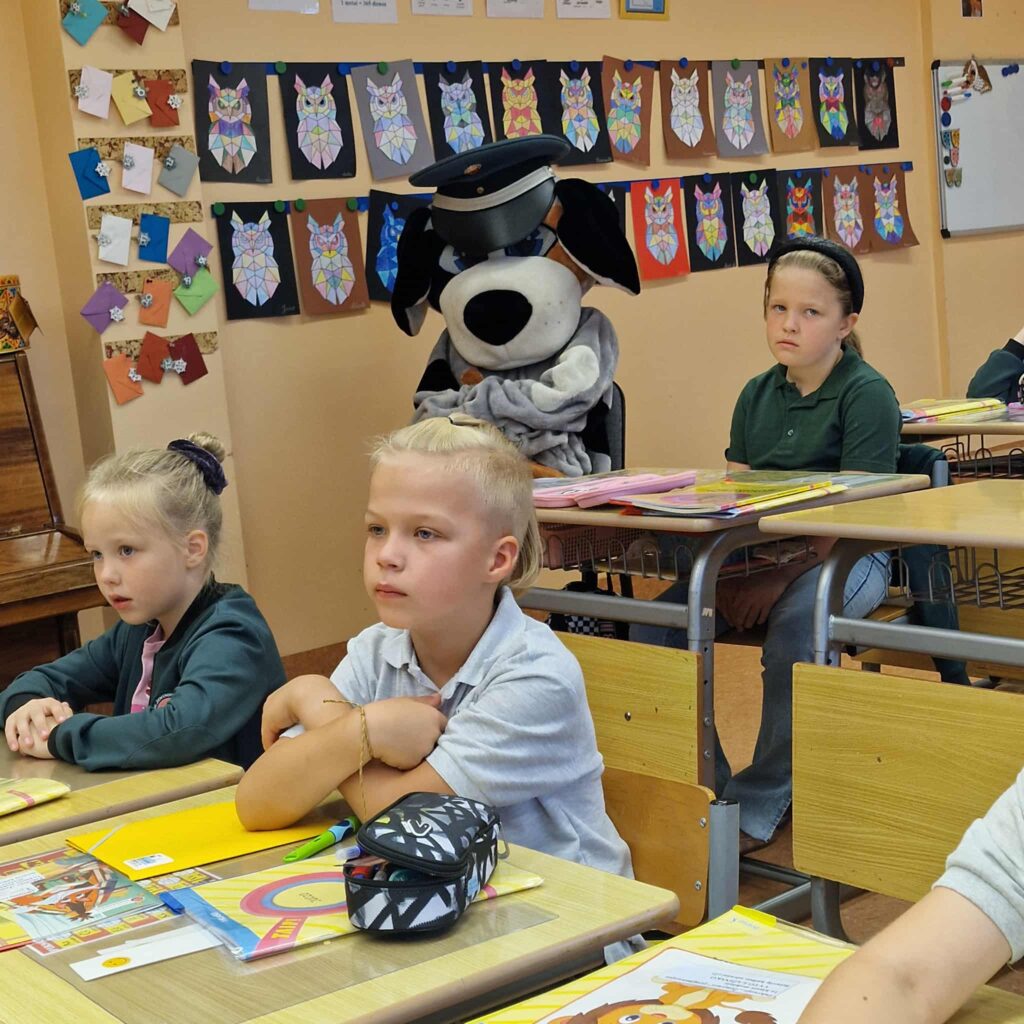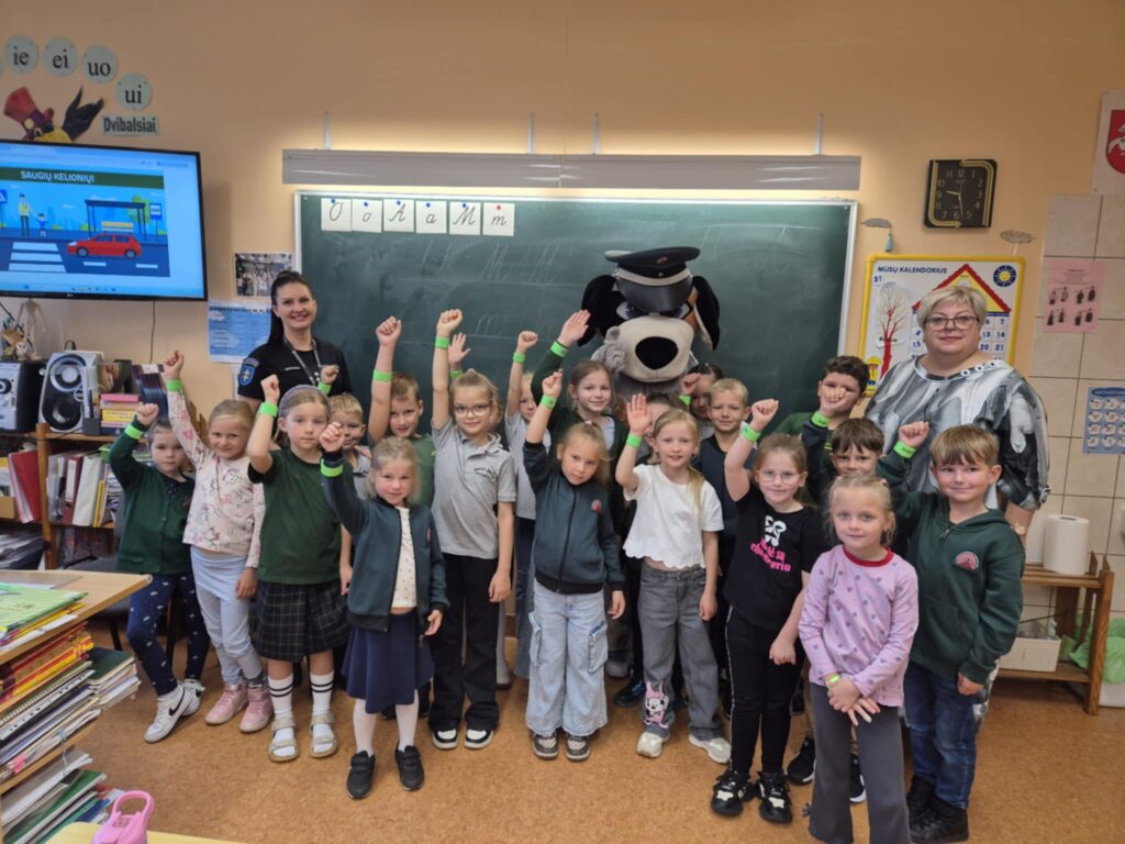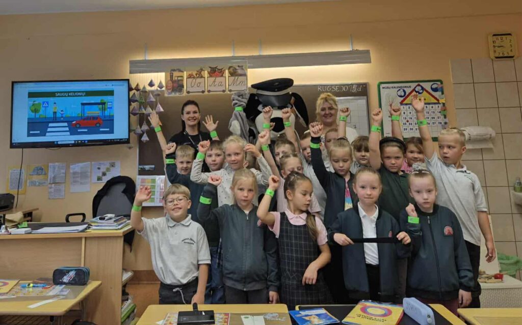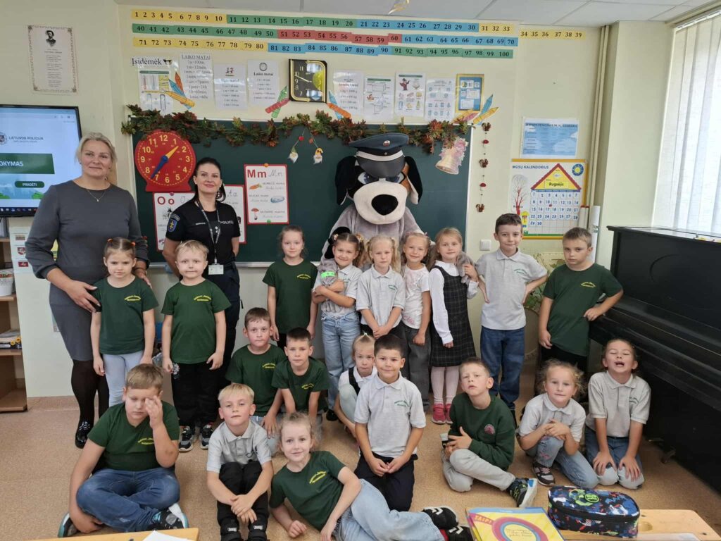 Rugsėjo 15 d. pirmokai turėjo ypatingas pamokas apie saugų eismą, kurias vedė bendruomenės pareigūnė Nida Morkūnė, o jai talkino vaikų mylimas policijos bičiulis Amsis. Mažieji mokinukai smalsiai klausėsi, kaip saugiai keliauti autobusu ar automobiliu, mokėsi taisyklingai pereiti gatvę, prisiminė šviesoforo spalvų reikšmes. Taip pat sužinojo, kodėl svarbu nešioti atšvaitus ir kaip tai daryti teisingai.