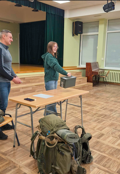 Minėdami lapkričio 23-iąją – Lietuvos kariuomenės dieną, 7a klasės mokiniai turėjo išskirtinę galimybę susitikti su Pakruojo priešgaisrinės gelbėjimo tarnybos vyresniuoju ugniagesiu gelbėtoju, kariu savanoriu, Lietuvos Šaulių sąjungos nariu Egidijumi Krivicku. Susitikimo metu jie sužinojo apie šaulių veiklą, patriotiškumo svarbą ir pilietiškumo ugdymą. Egidijus pasidalijo savo patirtimi, atsakė į mokinių klausimus ir padrąsino jaunimą aktyviai prisidėti prie Lietuvos saugumo ir bendruomenės stiprinimo. Susitikimą vainikavo varžybos, kuriose mokiniai išbandė savo jėgą ir ištvermę keldami šovinių dėžę ir kuo ilgiau ištiesta ranka ją išlaikydami. Ilgiausiai dėže išlaikyti pavyko Gabrieliui ir Letai.