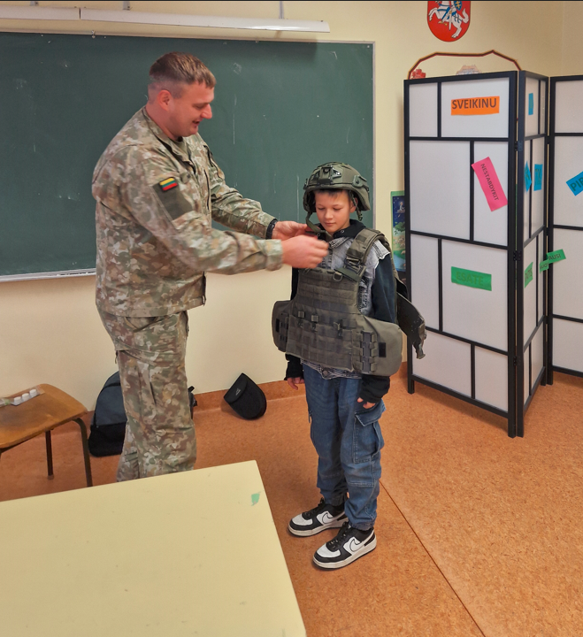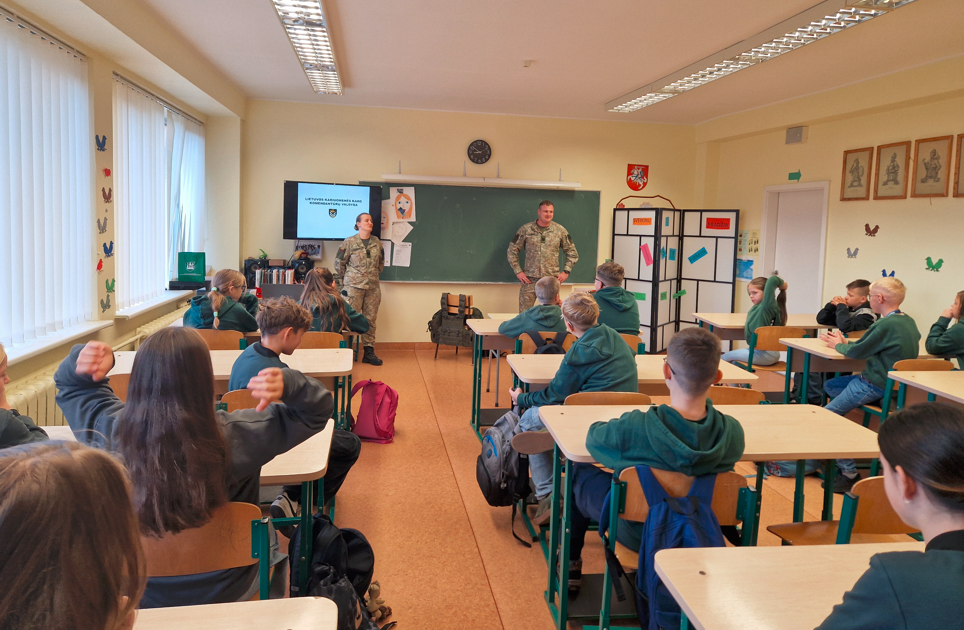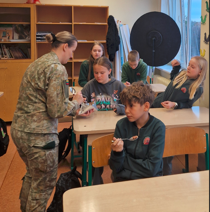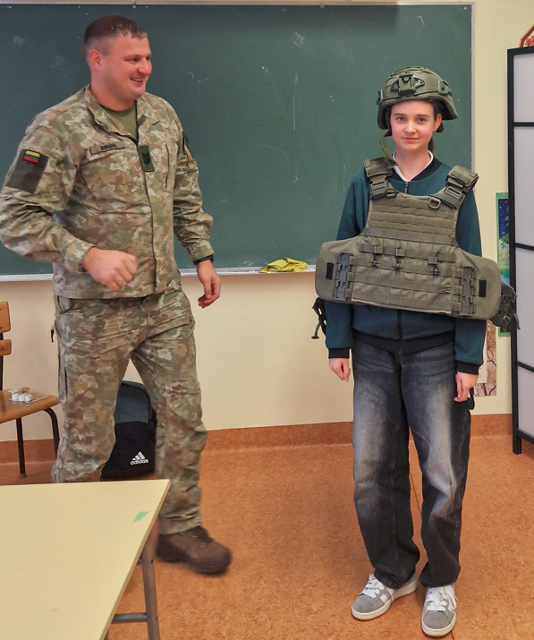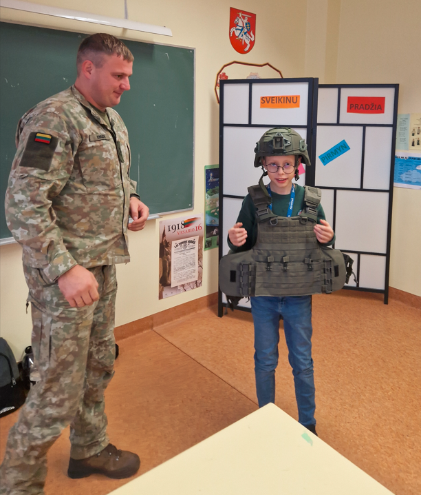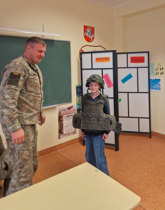 Lapkričio 23 d. – Lietuvos kariuomenės diena. 5a klasė, norėdama paminėti šią dieną, į klasės valandėlę pasikvietė Krašto apsaugos savanorių pajėgų Prisikėlimo apygardos 6-osios rinktinės seržantę ir vyriausiąjį seržantą. Jie labai įdomiai pristatė kariuomenės veiklą, supažindino su karių maistu ir netgi pavaišino daviniu: koše, riešutais, šokoladu ir sausainiais. Kiekvienas galėjo pasimatuoti kario liemenę ir šalmą. Tai buvo labai informatyvi ir įdomi klasės valandėlė.