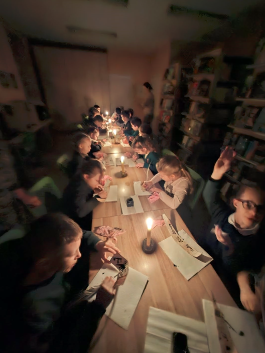Gruodžio 3–4 dienomis 1b ir 1c klasės mokiniai lankėsi Pakruojo Juozo Paukštelio viešosios bibliotekos Vaikų ir jaunimo erdvėje, kurioje veikia ypatinga, „senosios gadynės“ mokyklą primenanti edukacinė programa. Čia vaikai turėjo progą prisiliesti prie senųjų rašymo tradicijų – žąsies plunksna rašyti ir piešti ant beržo tošies, kaip kadaise darė jų bendraamžiai prieš daugelį metų.