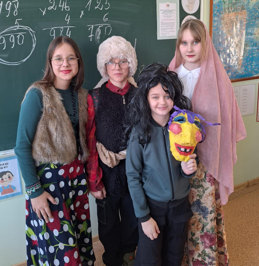 Užgavėnes progimnazijoje šventėme triukšmingai, linksmai, kaip ir dera išvarant žiemą! Kvietėme visus šokti, dainuoti, garsiai šaukti ir kviesti ateiti šiltą, saulėtą pavasarį. Ypač džiugino tai, kad neliko abejingų: mokiniai atėjo pasipuošę nuostabiomis savo rankomis kurtomis kaukėmis. Išrinkome dvi linksmiausias kaukes, nors, tiesą sakant, visos jos buvo vertos dėmesio ir susižavėjimo. Šventės metu kvietėme užrašyti ir simboliškai atsikratyti blogų minčių, kad pavasarį pasitiktume lengvesne širdimi ir dar geresne nuotaika. Nuoširdžiai ačiū visiems, kurie prisidėjo ir padėjo taip smagiai varyti žiemą iš kiemo!